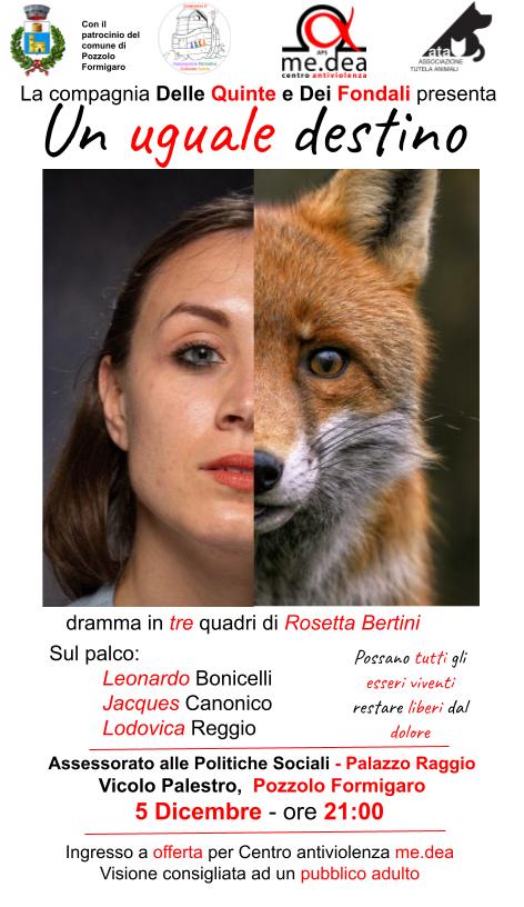 Il 5 dicembre 2025 alle ore 21.00, presso Palazzo Raggio – Vicolo Palestro, Pozzolo Formigaro – la compagnia “Delle Quinte e Dei Fondali” presenta lo spettacolo teatrale Un uguale destino, dramma in tre quadri scritto da Rosetta Bertini.